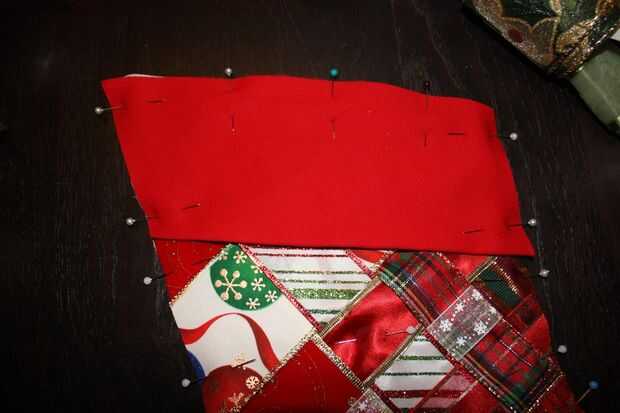 Mover los pasadores, uno por uno, para que todas las cintas son viradas hacia abajo en cada extremo, y los pernos son perpendiculares a los bordes, por lo que una máquina puede coser sobre ellos. Coloque el brazalete en la parte superior, con el borde doblado hacia abajo (borde incluso con la parte superior de la media) y la clavija en lugar. Quite todos los pernos que no se encuentran en los bordes.