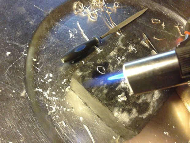 Cuando plata soldadura lo justo tienen para asegurarse de que las piezas que desea de la soldadura son tan cercanas como sea posible. Usar la aguja para aplicar la soldadura la pieza abierta y clip alguna soldadura (realmente necesita sólo un muy pequeño pedazo de soldadura). Asegúrese de que también tener algún flujo en el recorte de la soldadura.