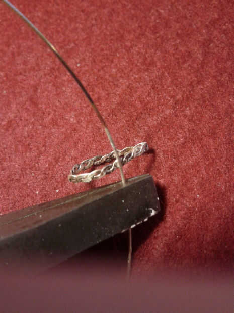 - Por lo que poner la llanta en mi soldadura bloque y cortar dos trozos de alambre para que se solapen un poco el borde. He apoyado les fuera cómo quería el volver a ver. Puesto que el ópalo era bastante cuadrado pude alinear sólo como una cruz con dos cables sentado justo en el medio. Esto dependerá totalmente de la piedra.