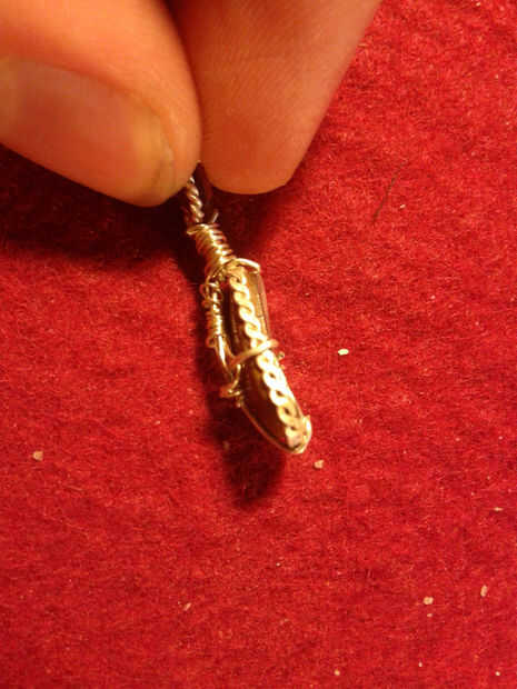 - Primero tienes que crear tu "borde". Para ello tomé un lengt de hammerd alambre giró y wraped alrededor de la circunferencia de la piedra. Comencé en el medio el lado más largo, sólo presionar el alambre alrededor de la piedra (alicate si el alambre no curva derecha)