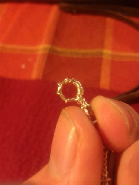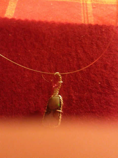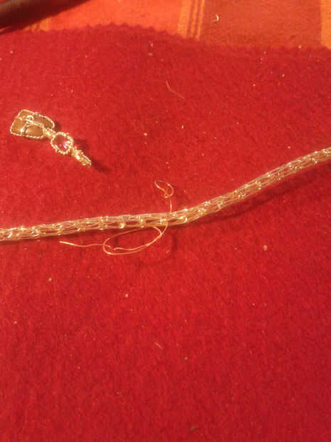 El cable restante solía envolver los lazos una vez en toda la longitud (para mantenerlos juntos) y luego envolver la conexión entre el lazo y el ajuste de la turmalina y el lado que era visible cuando usted usa la cadena.