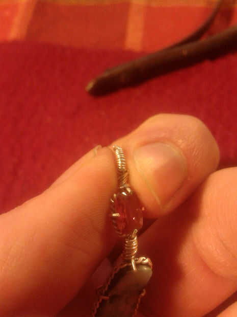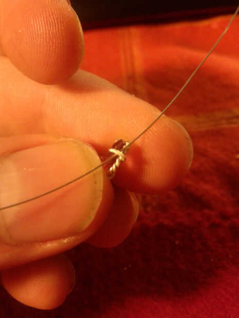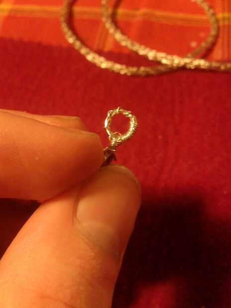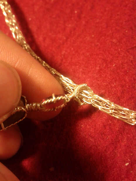 Hacer algo parecido para el lazo que une a la cadena. Me fijo el cable con el Turmalin y usa algo redondo que es más grande que la cadena (un bolígrafo). Luego wraped alrededor varias veces pasando por la configuración de una o dos veces más.