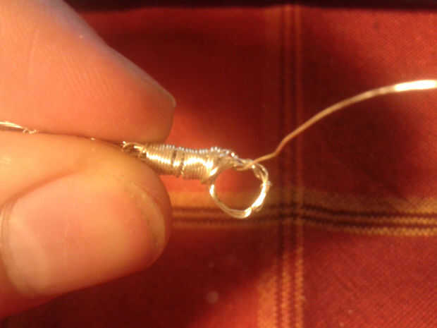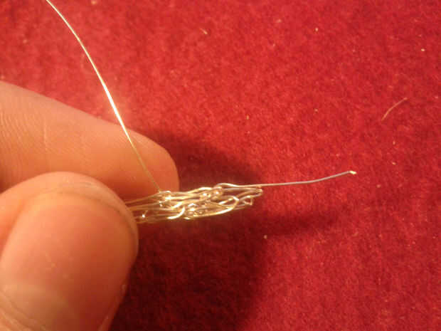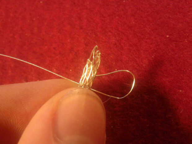 Por otro lado hice algo bastante similar. Usé la misma técnica que usé para hacer el lazo colgante. El wraping y el lazo es un hilo continuo, que solía hacer el bucle primero volver a través de la cadena, a partir de la envoltura de la cadena y mi camino, a los lazos, entonces a lo largo de las asas hasta que los lazos eran wraped.