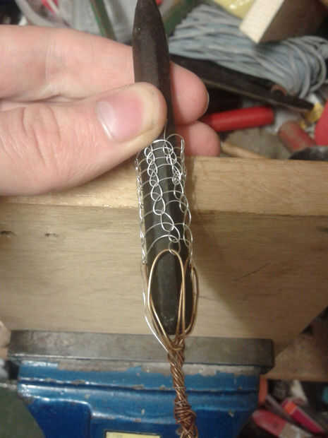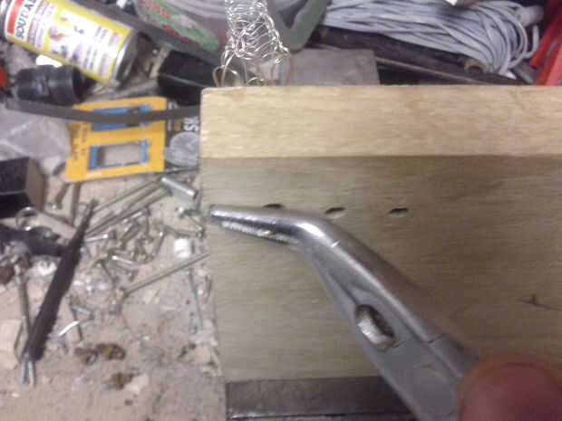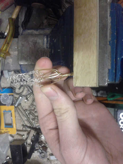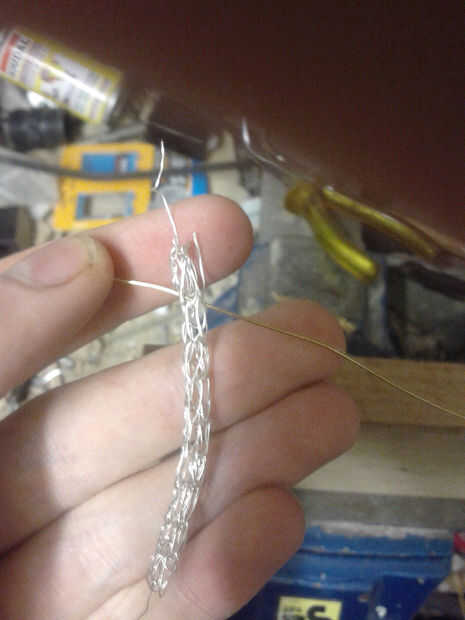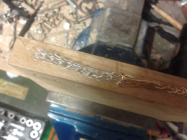 Luego dibujar el alambre por los orificios a partir de la más amplia. Para Coloque el final de 'flor' (donde es el iniciador de la cadena) a través del agujero y el tirón suavemente pero con firmeza. Si usted no puede caber el arranque de la cadena a través de los orificios corte de y enrollar un alambre a través de un par de veces el final que acaba de crear. Luego se usa para tirar de la cadena a través de.