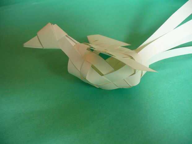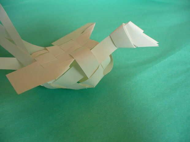Para la cabeza - plegar todas las piezas del papel y casi forman un poco nudo - corte con unas tijeras para hacer la forma del pico
