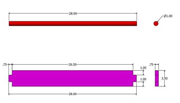 Cortar la 1" de diámetro madera varilla 28". Repita el procedimiento para hacer tres barras. Para el soporte, corte el 1 x 4 a 28" largo. Crear las muescas en el extremo como se muestra usando la Sierra de vaivén.