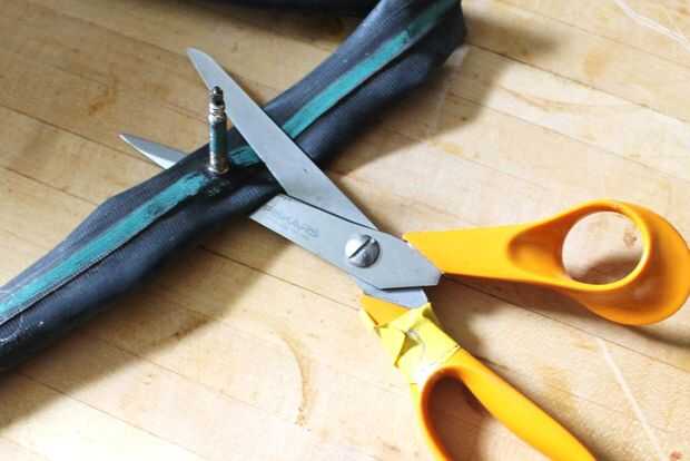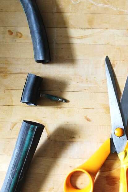Corte la válvula de aire del tubo por recortes directamente a través del tubo de cada lado.