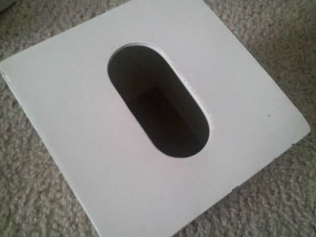 Al final debería verse como un papel de tejido cuadro titular viejo regular. Por último debe añadir algún pañuelo de papel o papel higiénico en la parte superior donde uno sería sacar el papel de tejido. Si alguien quita el papel que sólo tiene que añadir una nueva pieza. No importa porque no una persona lo verá lo oculta porque está escondiendo un pedazo de cartón. Vista es igual que la parte inferior de una caja de pañuelos.