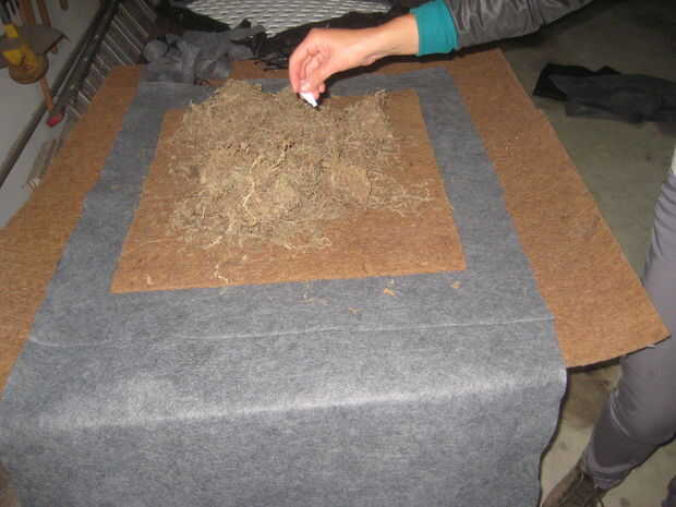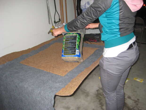 a continuación, coloque una pila de musgo sphagnum seco encima de la estera de coco.