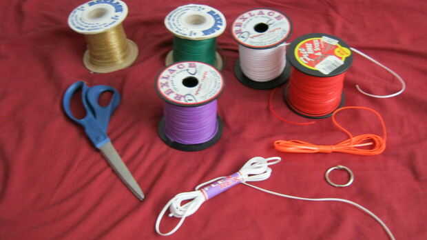 1. secuencia del acollador. Esto viene en una variedad de colores, normalmente en bobinas de 100 yardas. Funciona cualquier marca. Yo uso Rexlace, que es alrededor de $7-$9. un carrete aunque puede hacer un montón de cordones!