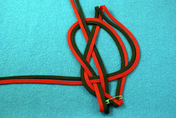 Tejer el extremo libre de la paracord para arriba a través del nudo, pasando bajo los primeros filamentos encontrados, en los próximos (ésta es la porción de anclaje), bajo el siguiente y sobre el final, terminando van a la parte superior.
