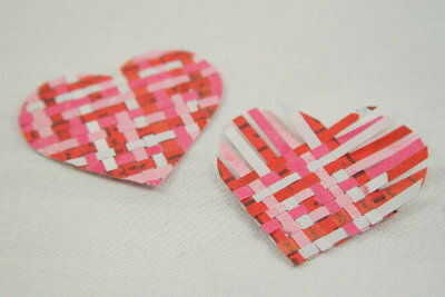 Aquí hay un tutorial que muestra cómo hacer corazones de papel tejida, que se pueden utilizar como decoración de regalos y marcadores.Simplemente imprima los patrones de ejemplo (o inventar tu propio) en la posición deseada de color papeles. Cortar e