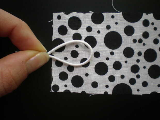 Corte cualquier exceso elástico, dejando aproximadamente 1/2" que se extiende más allá del borde de la tela.