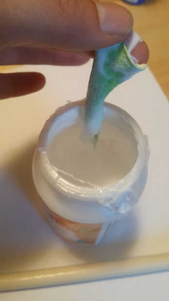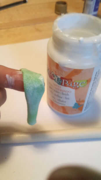 Esta es probablemente la opción messiest modge podged a su tela. Otra opción es cepillar el modge podge sobre la tela mientras se sienta en el papel de cera.