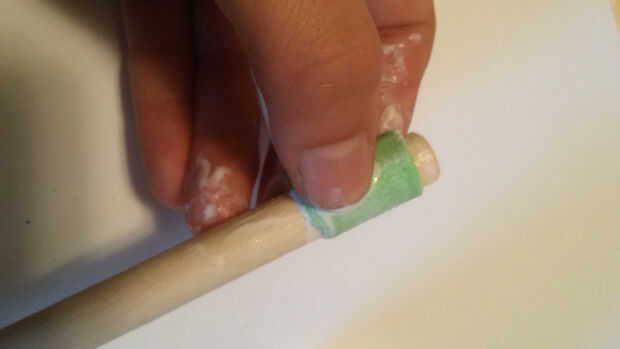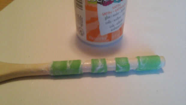 Iniciar con una ligera capa de modge podge del cepillo en el mango de la cuchara.