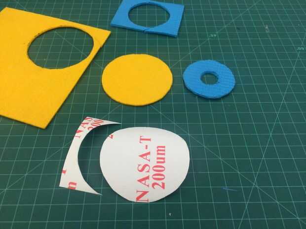 Recorte las formas de su diseño en el fieltro, espuma eva, tela conductora y adhesivo.