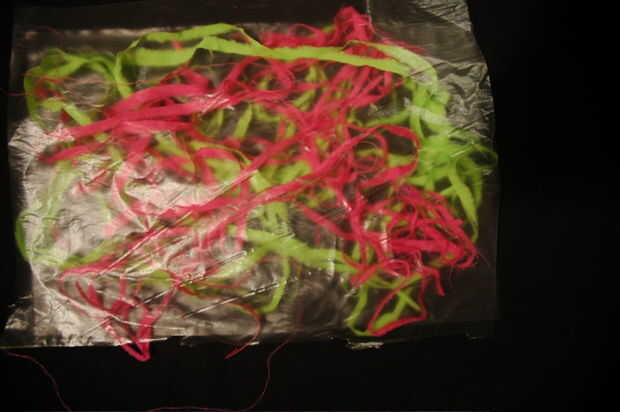 Coloque la segunda pieza del estabilizador soluble en la parte superior el confeti.