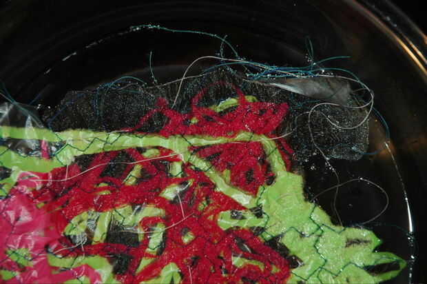 ropa Sonar para ayudar a los invidentes con navegando por el entorno construido. Hecha de placa Lilypad, telémetro ultrasónico LV-MaxSonar y un vibeboard de LilyPad. El telémetro puede ajustarse para localizar una distancia objeto sólido X delante de