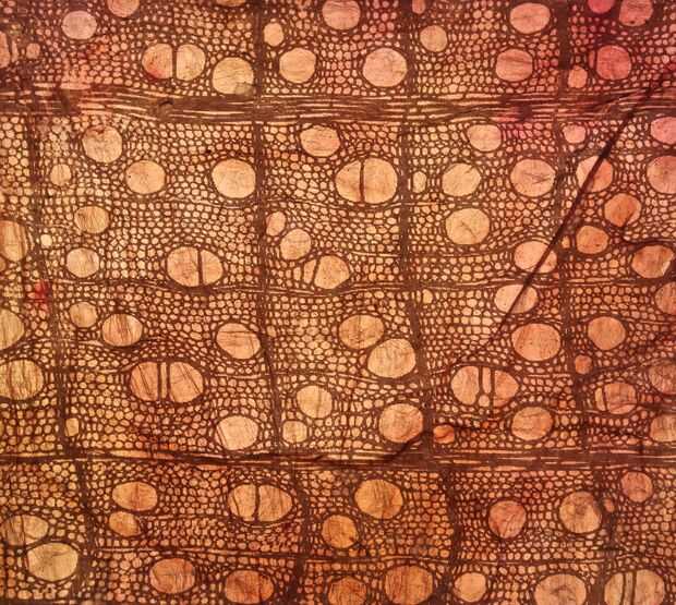 Pensar de este brebaje microbiana como una colmena de la abeja pero en vez de miles de abejas construcción de peine, hay millones de bacterias microscópicas spinning y construcción de las fibras de celulosa. Estas fibras crecen el el tamaño del contenedor. El resultado final son esteras mojadas de fibra que puede ser moldeada, teñidos y secos. Una vez seco, la textura va de un material de cuero como convincente a un papiro. Mientras que la tela es muy fuerte, no es resistente al agua o incluso resistente al agua. Es una gran desventaja. Sin embargo, lo desafío a resolver.