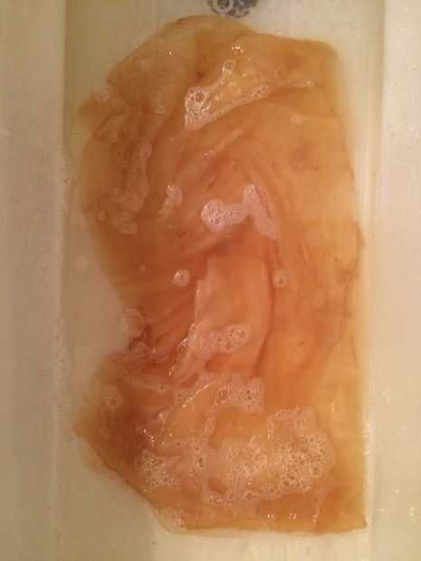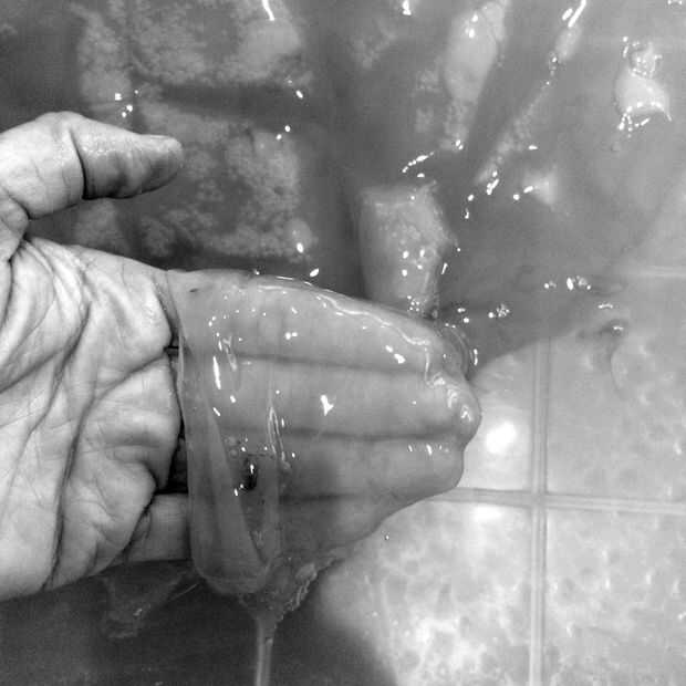 Una vez que el material alcanza el grosor deseado, retire del recipiente y lávelo con agua jabonosa fría y enjuague bien.