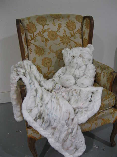 Usé aproximadamente 300 jumbos-bolas de algodón para hacer la manta de bebé de 5'x 5' y cerca de 200 más para hacer y el oso de la materia.