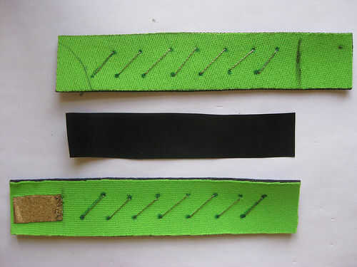 Por lo tanto, colocar la pieza de Velostat en el medio y coser el sensor como se muestra en las fotos. No coser demasiado bien, de lo contrario tendrás una presión inicial que hará que el sensor menos sensible.