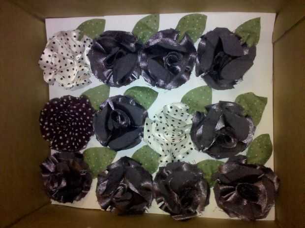 Tomar la flor de la tela, pegar la hoja en la parte posterior. Tomar su pin, ábrala y, utilizando el pegamento caliente, pégala para que el pin es recto y la hoja es en la esquina inferior izquierda. Tomar un pequeño rectángulo de tela y pegamento caliente sobre el pasador para que el pasador de vuelta se intercala entre la flor y el tejido. El perno sí mismo debe estar fuera del camino y hasta no conseguir pegado.