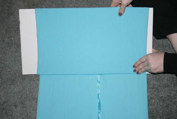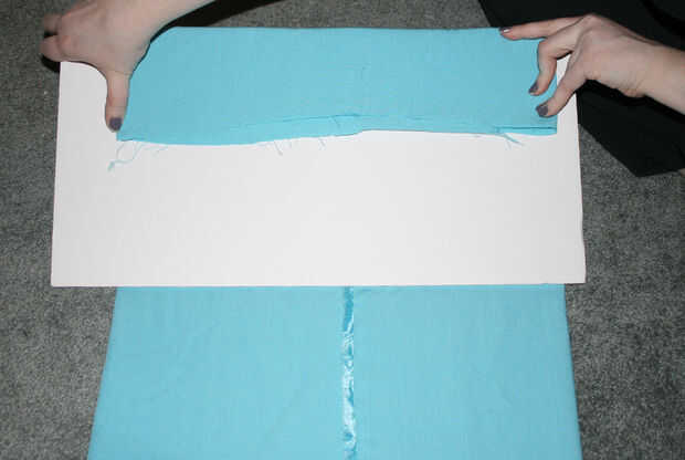 En primer lugar, coloque a la tela y doblar a la tela sobre que es alrededor de 18" ancho, pero sin duda menos de 20". Esto hará encajar correctamente en la base de la espuma. Coloque el tablero de la espuma unos 3 a 4 pulgadas de un extremo de la tela, luego doble la tela sobre el borde de la base de la espuma. Sujetando la tela envuelta contra el tablero, pulse el otro borde de la Junta de espuma contra la tela y empezar a rodar a lo largo de la longitud de la tela, manteniendo a la tela tan tenso como sea posible.