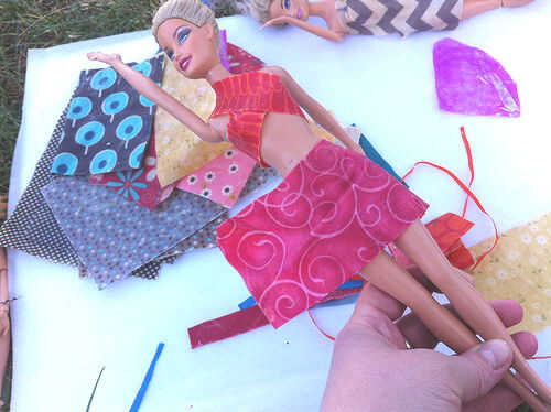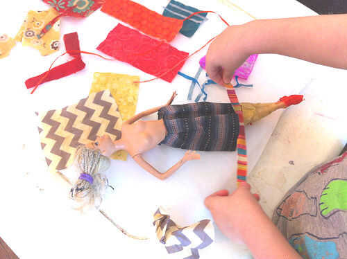 Si su hijo tiene edad suficiente para confiar con tijeras (mi hija todavía corta su pelo en cada oportunidad), hágale saber que está bien cortar a la tela según sus preferencias mientras jugaba con el kit.