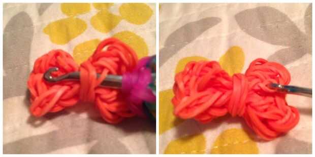 Poner su pick de telar o crochet aguja a través de las bandas atado alrededor de la mitad de tu arco. Tire una sola banda a través de esas bandas.