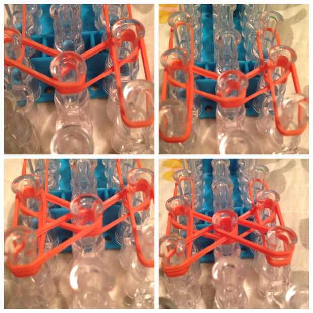 Paso 1: fuentes de 1. telar de arco iris2. crochet gancho telar gancho o arco iris3. bandas de goma4. C clip o clip de sPaso 2: Cómo empezar Tomar tus bandas claro y colocarlos donde están en la foto.Paso 3: Hacer el efecto de la roca del caramelo En