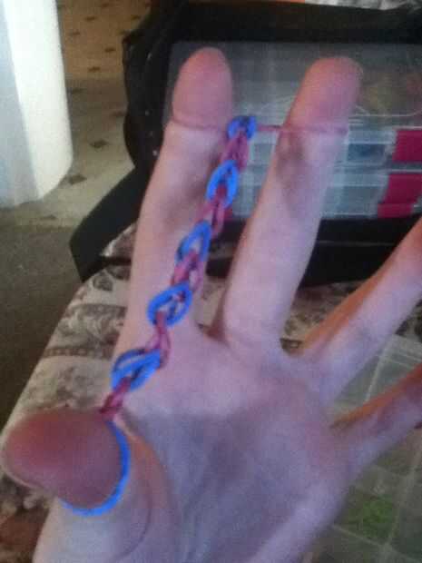 yaaPaso 1: Vas a necesitar:telar del arco irisGanchoBandasClip CPaso 2: Agarrar una banda y empieza de la clavija central en la clavija correcta, luego volver a la clavija media. Repita el proceso hasta que usted alcanza la parte superior.Paso 3:Dale