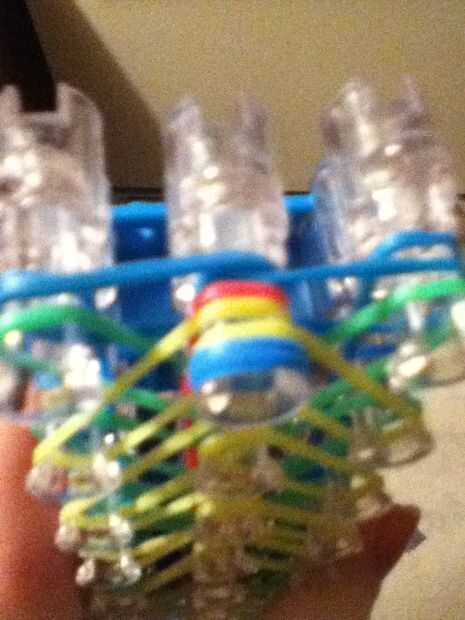 Paso 1: fuentes de Necesita un kit de inicio para el telar del arco iris y algunas elásticas.Paso 2: Colocar las bandas Iniciar colocando un color de borde y no empezar a poner encima de todo lo que tienes que hacer en los patrones.Paso 3: Colocar la