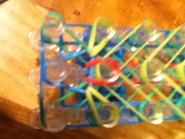 Paso 1: fuentes de Necesita un kit de inicio para el telar del arco iris y algunas elásticas.Paso 2: Colocar las bandas Iniciar colocando un color de borde y no empezar a poner encima de todo lo que tienes que hacer en los patrones.Paso 3: Colocar la