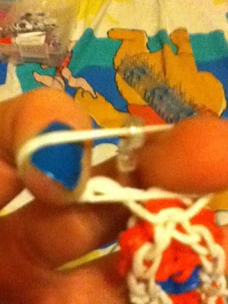 espero que todos disfruten mi primer instructables! Por favor dejar comentarios, preguntar y sugerir!Paso 1: fuentes de Usted necesita lo siguiente:· Telar del arco iris· Gancho· Bandas de gomaPaso 2: Colocar las gomas Empezar desde la parte inferior