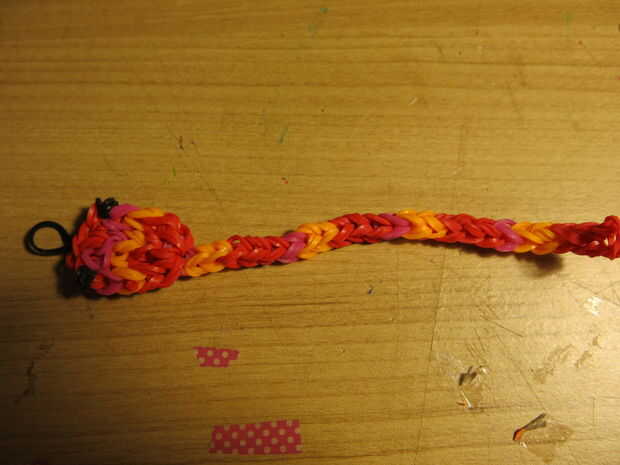 Ahora usted tiene una impresionante serpiente de telar bandas! Por alguna razón tenía algunas bandas naranja que sobró, pero tal vez sólo conté mal al principio.