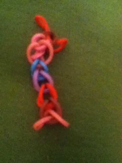 esto es algo que también me inventéEspero que les guste!!Paso 1: Se necesita Necesita una fila de un telar del arco iris, 3 bandas, un gancho y un clip de sPaso 2: Colocar las bandas Lugar sus dos primeras bandas como se muestra y hacer una banda de