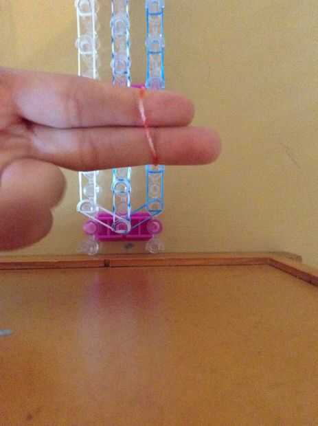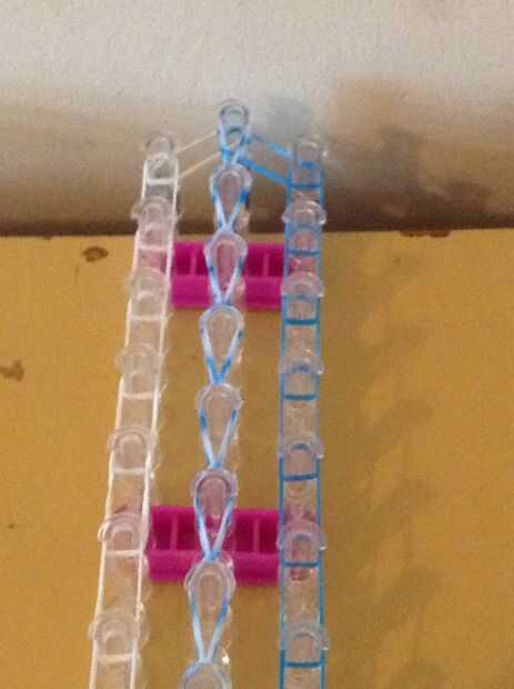 Esta es la parte fueron vuelta su telar y pones una banda en los 2 dedos y luego conseguirlo hacen un 8 y luego de ponerlo detrás en él mismo y luego pones que en la primera clavija media (Recuerde que le ha girado alrededor del telar). Y entonces usted conseguirá usted gancho y gancho agarrador que primero la banda que está en la primera clavija media y conseguirlo y ponerlo en la segunda clavija media (estaban detrás vino de) y hacer lo mismo entrar en el segundo medio peg y luego agarrar la banda que es de allí y luego vuelve a poner vino de y luego hacer que todo el camino. A continuación, desea volver a la primera clavija media y luego la izquierda uno (el blanco) Y luego ir hacia arriba. Y luego hacer lo mismo en el lado derecho.