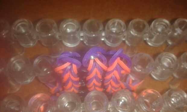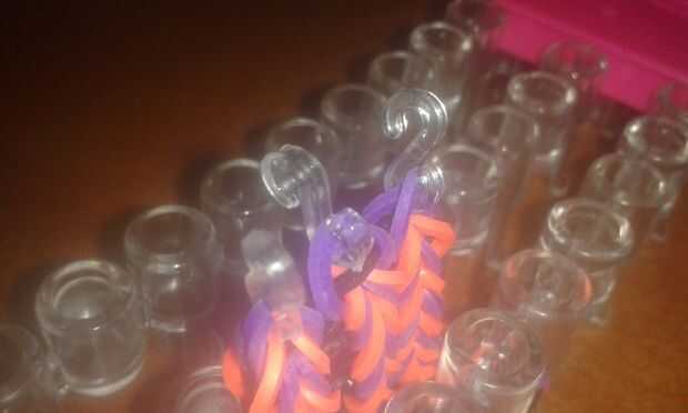 por favor como y seguir!!!!!! Asegúrese de que el telar se parece a las fotos!Paso 1: materiales Se necesita:Un telarUn gancho deBandas del arco irisClips dePaso 2: Comenzar con un telar En el telar, lugar de su primera banda de caucho diagonalmente