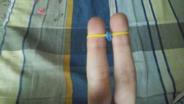 Agregar otra banda encima de la primera de ellas y traer el primero de ellos en la parte superior, puede parecer complicado en primera las fotos.