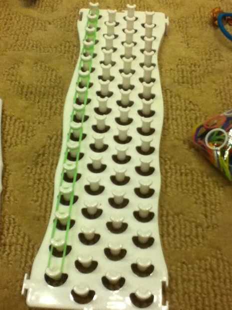 Este es el primer brazalete de la que hacen usando el telar del arco iris. Es un nivel de principiante y se tardan al menos 1 o 2 minutos para hacer. Se necesita un telar (trabajos con telar del arco iris, maravilla telar, telar de diversión o cualqu