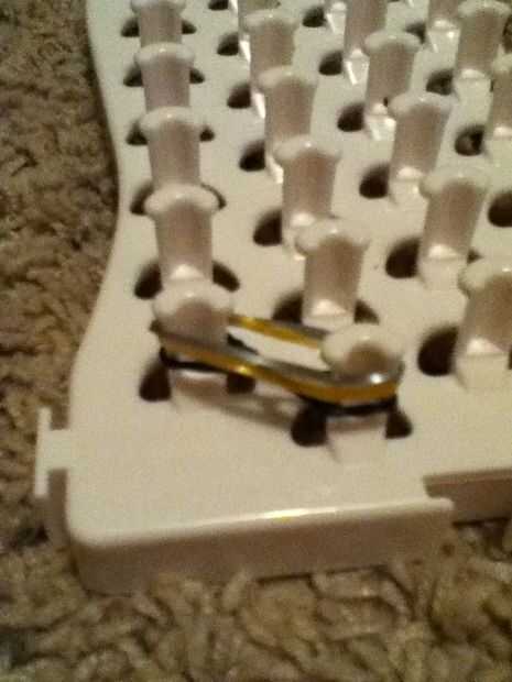 hoy voy a mostrarte cómo hacer un invertido espina de pescado cruzado en el telar del arco iris.Paso 1: No sé cuántas bandas usé pero necesito 1 c clip.Paso 1 el telar debe ser recto y una x pero hacer una figura 8.Paso 2: Paso 2 Añadir 3 no capas fu