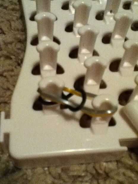 hoy voy a mostrarte cómo hacer un invertido espina de pescado cruzado en el telar del arco iris.Paso 1: No sé cuántas bandas usé pero necesito 1 c clip.Paso 1 el telar debe ser recto y una x pero hacer una figura 8.Paso 2: Paso 2 Añadir 3 no capas fu