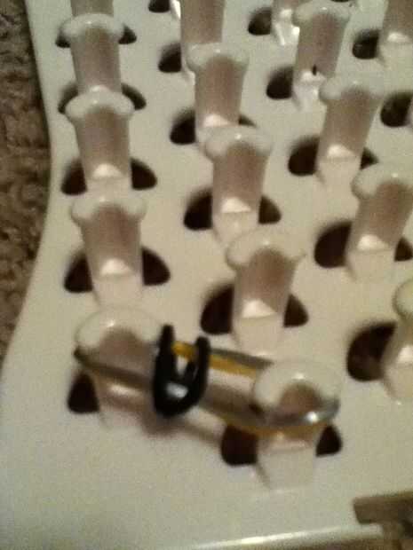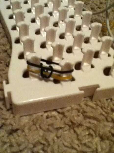 Paso 1: materiales: Necesita...Un kit de telar del arco irisBandas de gomaGancho telar de arco irisClip C o S clip :)Paso 2: Hacer la pulsera: Tomar una banda elástica y tuérzalo alrededor de dos clavijas que telar.Paso 3: Una vez que tengas la goma