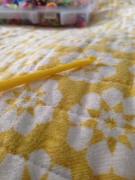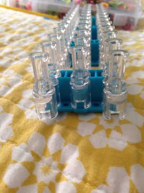 sus materiales. Necesita 45 claro o bandas, 2 bandas negras y 1 banda de su elección de colores. También necesitarás un gancho que se avecina, te recomiendo un metal.Paso 1: que se avecina Asegúrese de que su telar semicírculos son hacia usted.Paso 2