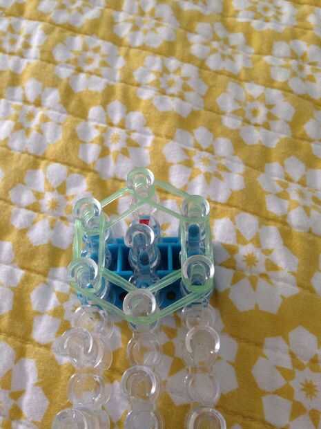 Paso 1: materiales Telar del arco irisBandasGanchoPaso 2: Colocación de bandas Tomar una banda primero ir de media peg a enfrente de él. Luego tomar dos bandas y hacer lo mismo en la fotografía. Ir de media ped en la clavija correcta diagonaly, hacer