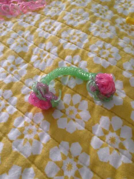 Paso 1: Lo que se necesita Necesita 38 bandas rosa luz8 bandas de color de rosa caliente4 bandas negras4 bandas amarillotelar del arco 1 iris1 ganchoPaso 2: Comenzar su buho Take 2 luz rosa bandas y ponerlas como en la foto. Estos serán tus oídos! A