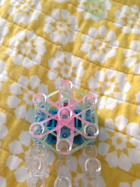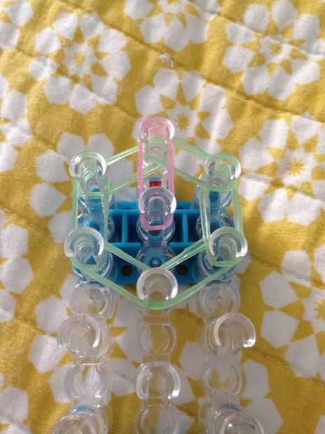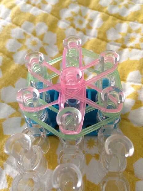 Paso 1: materiales Telar del arco irisBandasGanchoPaso 2: Colocación de bandas Tomar una banda primero ir de media peg a enfrente de él. Luego tomar dos bandas y hacer lo mismo en la fotografía. Ir de media ped en la clavija correcta diagonaly, hacer