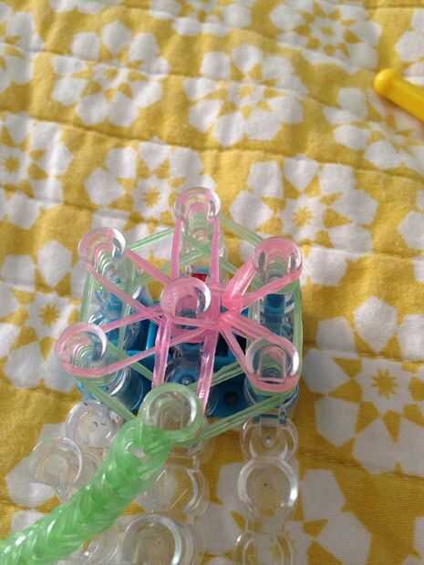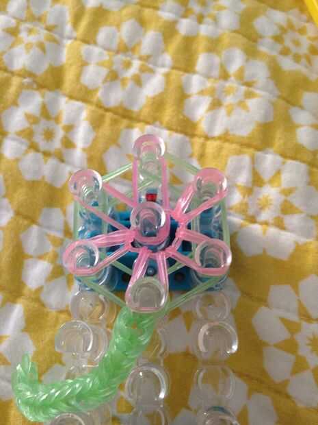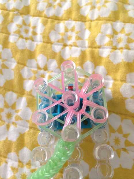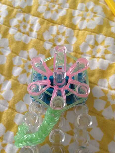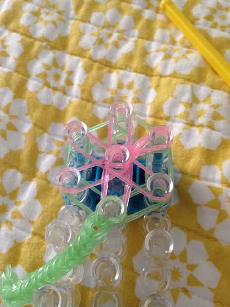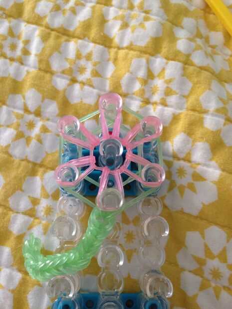 Cuando estaba tomando fotos, empecé a darme cuenta que el proceso que se avecina que estaba usando no funciona con la parte de cola de pescado, por lo que en las fotos veis la parte de cola de pescado en el telar. No lo ponga en el telar todavía! Esto hará muy difícil de hacer los siguientes pasos.