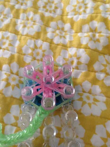 Paso 1: materiales Telar del arco irisBandasGanchoPaso 2: Colocación de bandas Tomar una banda primero ir de media peg a enfrente de él. Luego tomar dos bandas y hacer lo mismo en la fotografía. Ir de media ped en la clavija correcta diagonaly, hacer